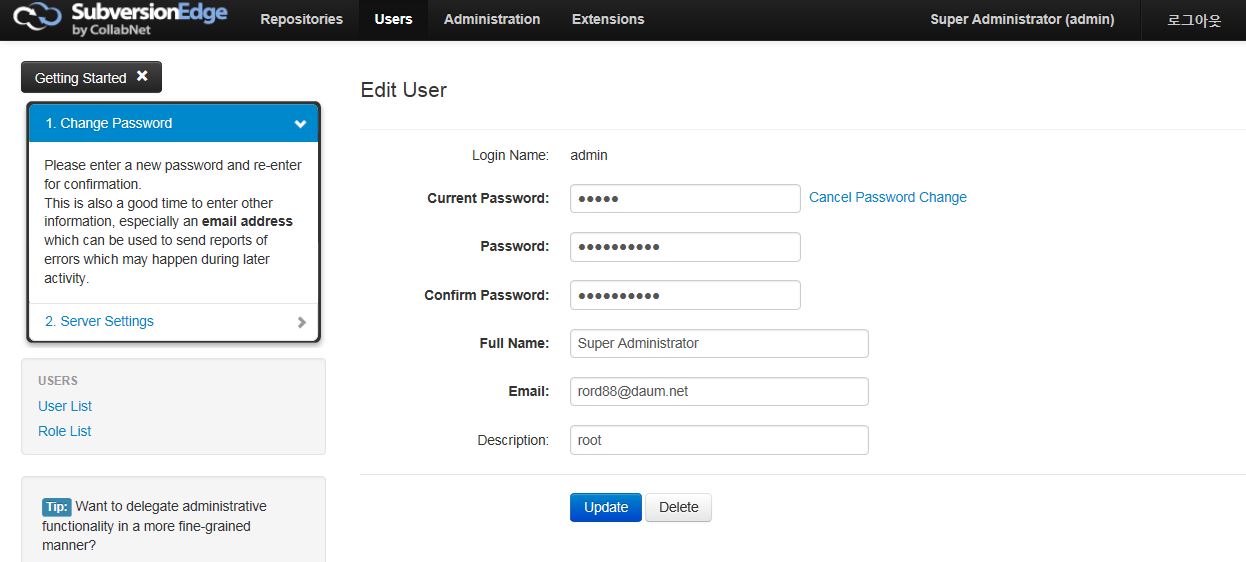 ※ 권고 사항 : SVN또는 형상관리 솔루션들은 되도록이면 CI/CD(jenkins)가 설치되어있는 계정으로 설치