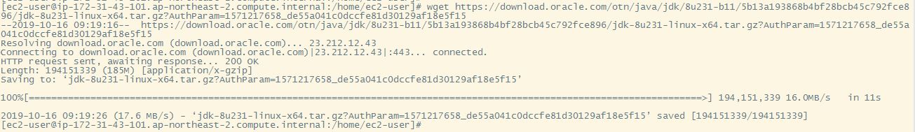 wget https://download.oracle.com/otn/java/jdk/8u231-b11/5b13a193868b4bf28bcb45c792fce896/jdk-8u231-linux-x64.tar.gz?AuthParam=1571218105_b3732eebdfe583da2e4b69750a788d31