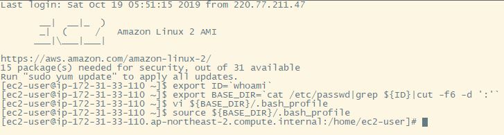 export BASE_DIR=`cat /etc/passwd|grep ${ID}|cut -f6 -d ':'`