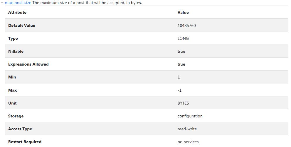 /subsystem=undertow/server=default-server/ajp-listener=ajp/:write-attribute(name=max-post-size,value=1073741824)