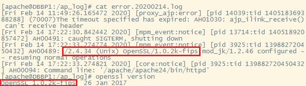 아파치 기동 시, 초기화되는 과정에서 참조되는 OpenSSL버전을 확인할 수 있다.